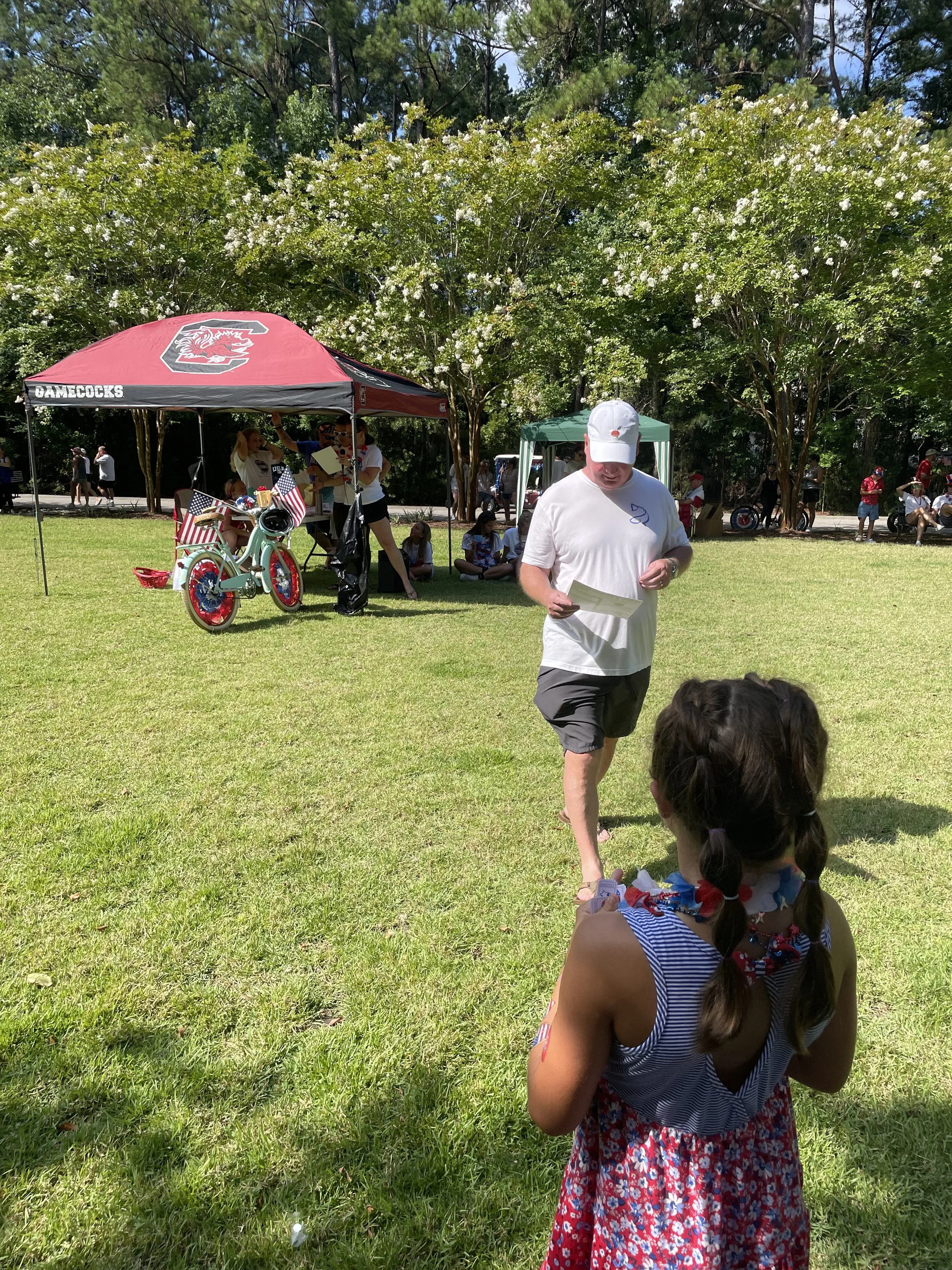 Don’t have a golf cart? Don’t worry. “Patriotize” your bicycle with some red, white and blue and join us. However, please be sure you are not riding your bike around in the start/finish area for safety.